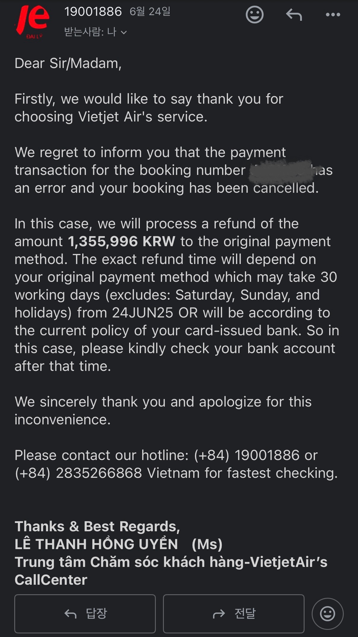 | [여행] 비엣젯, 결제오류 환불 후기 & 환불신청 양식 (3) | 2025.06.18 |