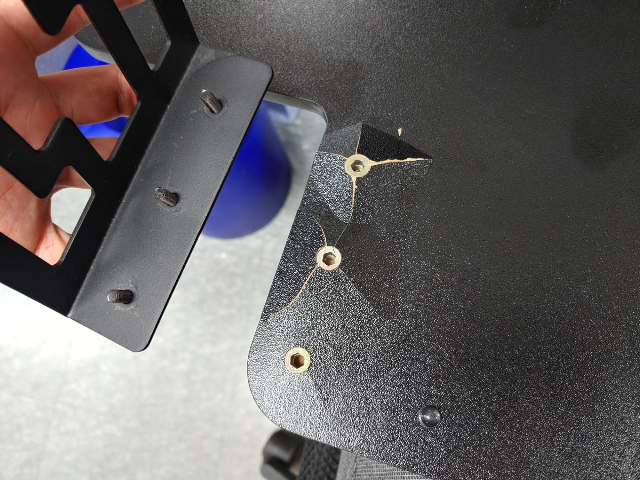 다른 물건 또는 박스가 키보드 트레이 위에 올려지면서 마운팅 부분만 중력방향으로 터져(부셔져) 버린듯 했다.