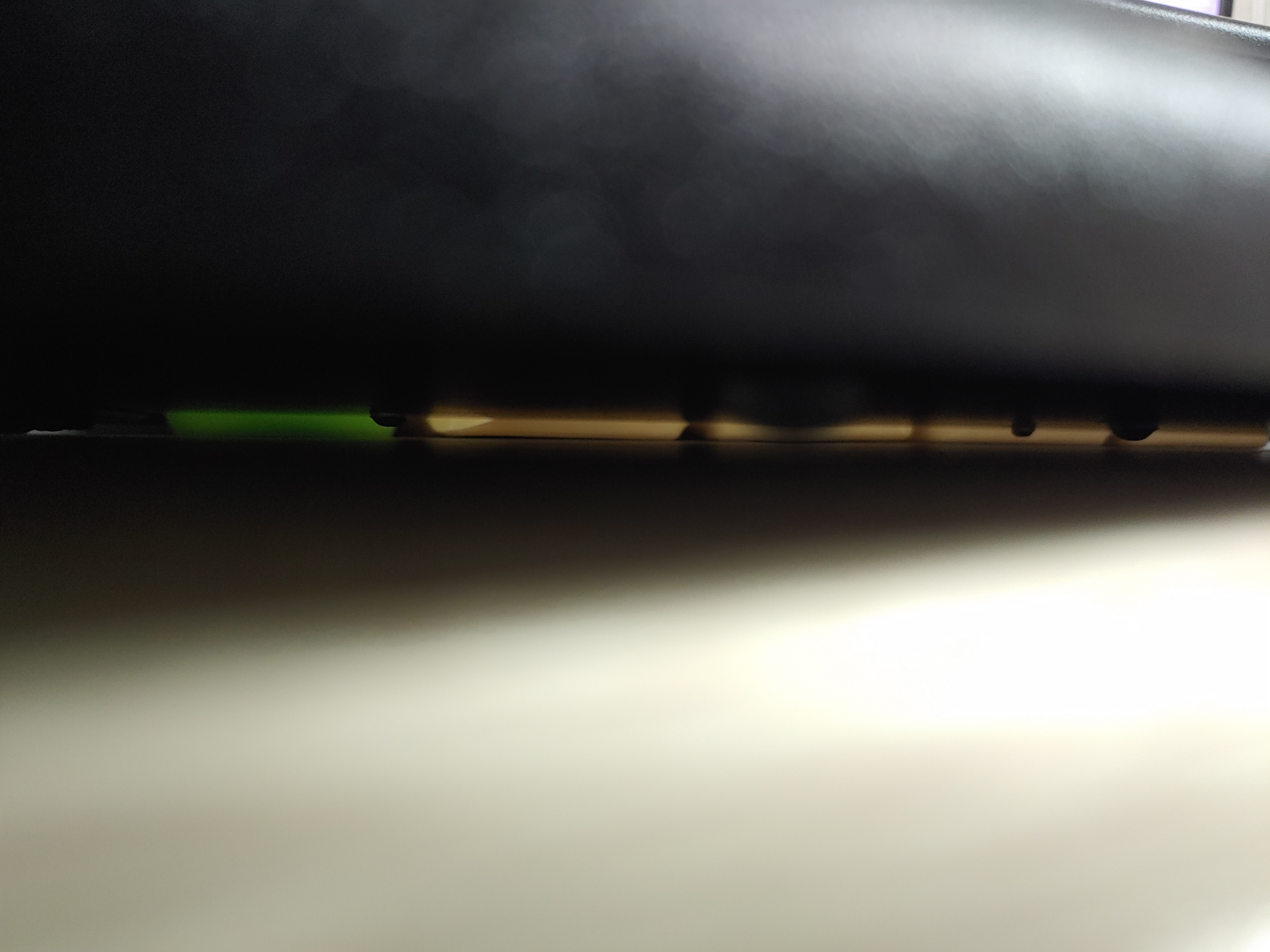 키보드 트레이(하판) 바닥에 동글동글한 고무다리가 보인다.