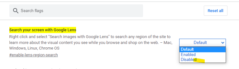 구글검색 창에 위 문장을 통째로 복붙 후 아래 메뉴에서 Default 를 'Disabled' 로 선택