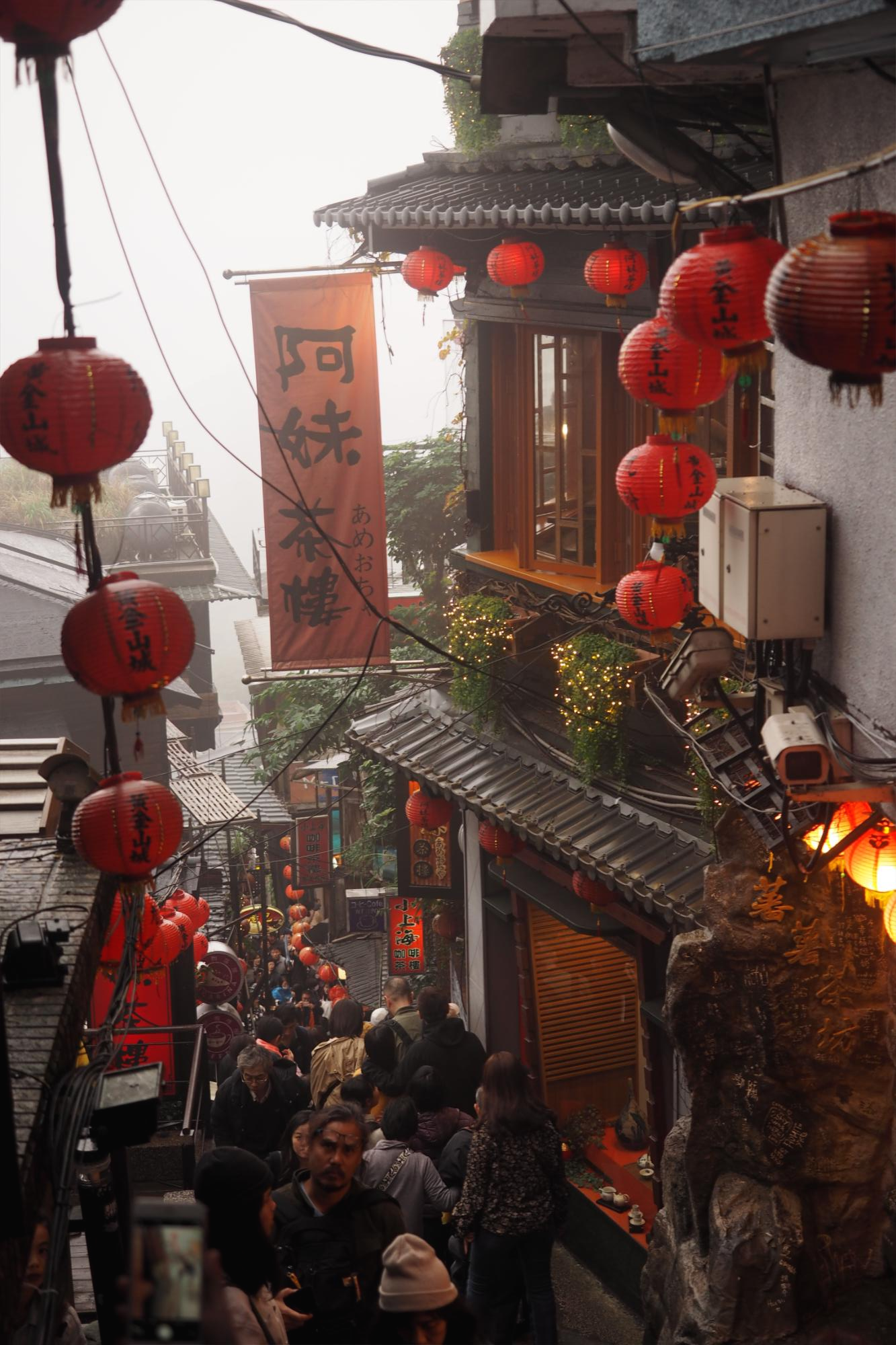 지우펀은 애초에 산윗자락에 있는 동네라 안개에 휩싸이기 일수다. 비도 많이온다.